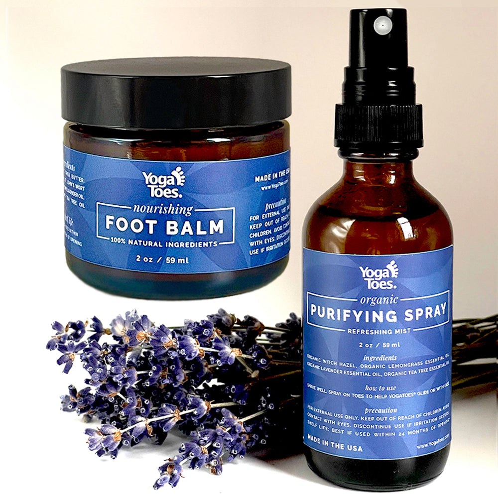 Experience an unparalleled sensation of freshness, cleanliness, and deep nourishment for your feet. The Purifying Spray helps your YogaToes® glide on effortlessly, preparing your feet for a rejuvenating stretch. Afterward your YogaToes® session, indulge in the luxurious Foot Balm to lock in moisture and leave your feet feeling incredibly soft and revitalized.